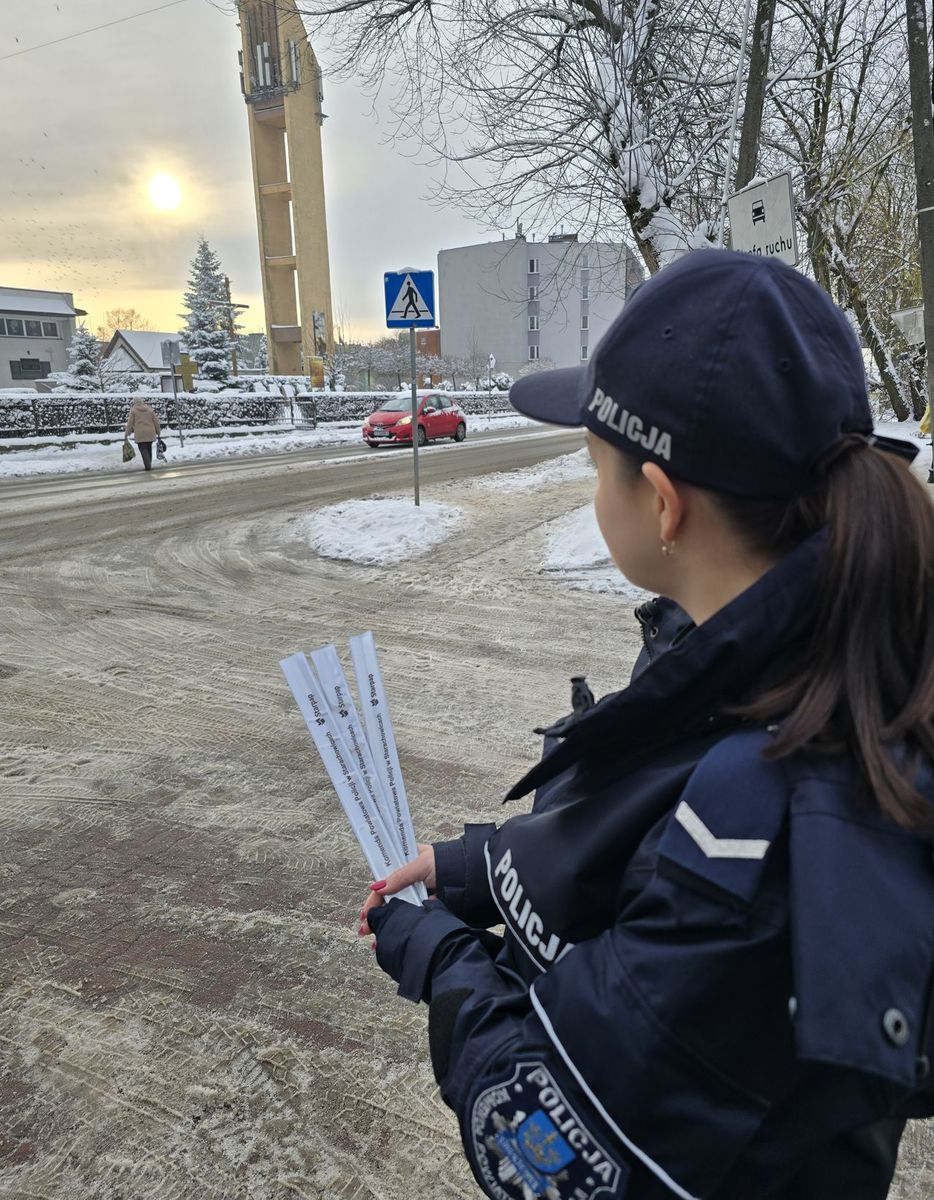 Starachowiccy policjanci wręczali pieszym odblaski